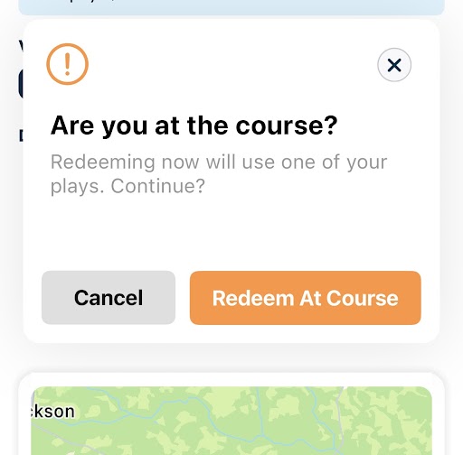When the golfer clicks on the Redeem button, they'll get a pop up asking them: